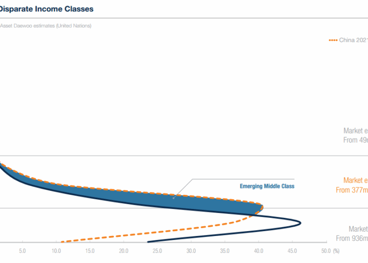 “We project that China’s middle class will grow from 377 million in 2011 to 732 million in 2021, showing an incremental increase easily surpassing the entire population of the US,” Mr Kim wrote.